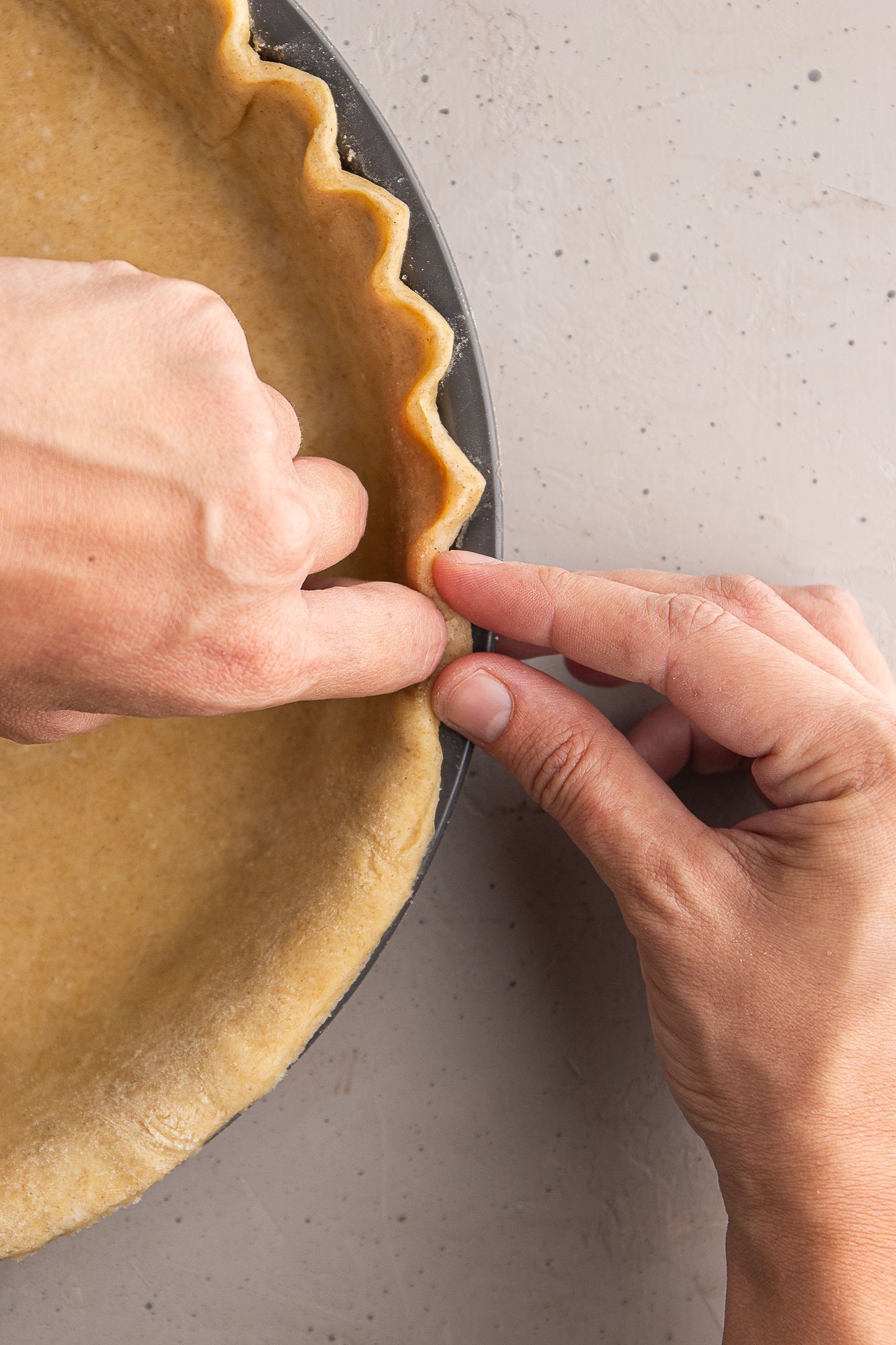 Bei der Herstellung des Teiges ist es sehr wichtig, kalte Butter und eiskaltes Wasser [Tipp: einige Eiswürfel in das Wasser geben] zu verwenden und den Teig so kurz wie möglich zu kneten. Durch die kühlen Temperaturen und das wenige Kneten, geht das Mehl keine feste Verbindung mit der Feuchtigkeit ein und der Teig behält eine zarte mürbe Struktur. Die kalte Butter sorgt beim Backen für die blättrige Konsistenz, ähnlich wie beim Blätterteig. Genug der Backwissenschaft! Viel Freude beim Backen, deine Julia.